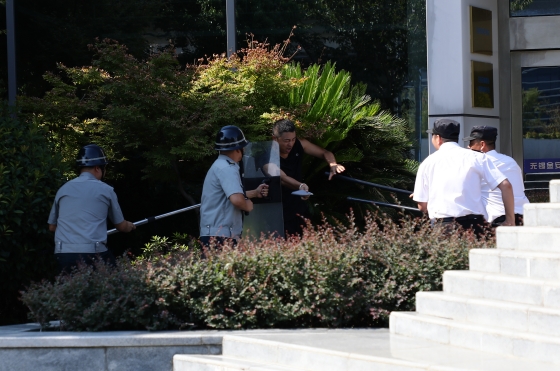 “請(qǐng)出示有效證件!”南大門崗?fù)ぬ帲T衛(wèi)例行開展身份核驗(yàn)時(shí),一名男子不僅拒不配合,反而情緒激動(dòng)推搡門衛(wèi),企圖強(qiáng)行闖入基地。危機(jī)時(shí)刻,保安組立即啟動(dòng)應(yīng)急響應(yīng):南大門快速關(guān)閉落鎖,一名保安同步向監(jiān)控中心實(shí)時(shí)匯報(bào)險(xiǎn)情,其余隊(duì)員手持防暴叉迅速形成包圍攔截陣型。見攔截受阻,男子突然從懷中抽出“匕首”揮砍反抗與保安陷入對(duì)峙。接到指令的值班人員火速馳援,憑借默契配合形成攻防合力將“侵入者”成功制服并控制。隨后,現(xiàn)場(chǎng)按流程聯(lián)系警方移交處置,整個(gè)過程反應(yīng)迅速、操作規(guī)范、銜接無縫。